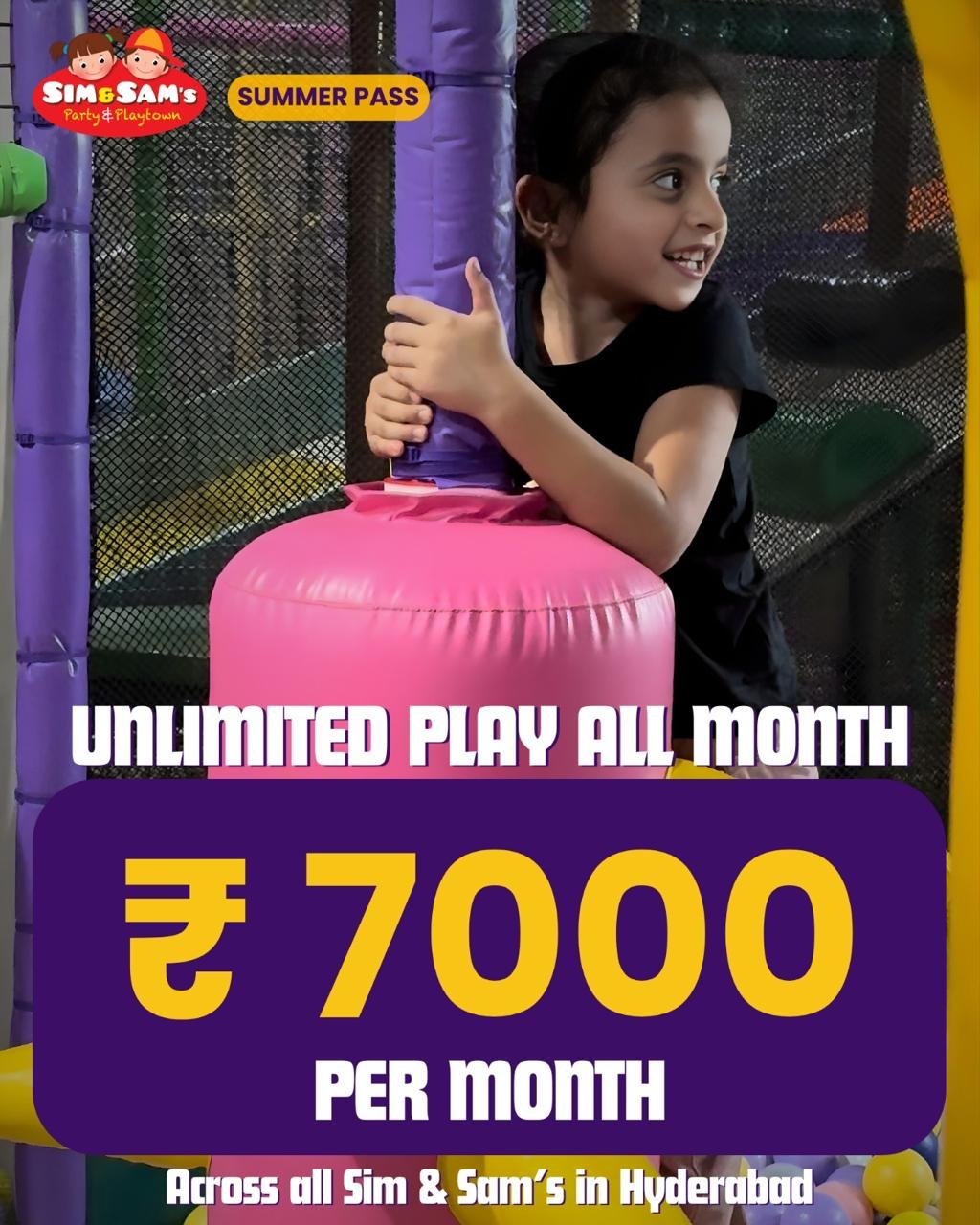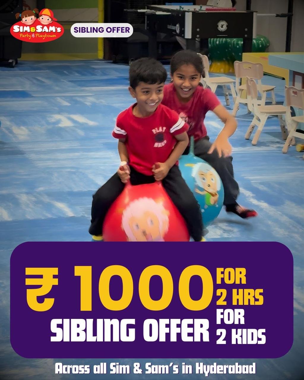 Children below Age 12 years must go through vigorous aerobic activity for proper physical, cognitive, emotional and creative development. Emphasising on this we have used our resources to design 100% Gadget Free play spaces for Children, Sim & Sam’s stand tall as the largest and only Gadget Free Play Area for Kids in Telangana, Hyderabad.